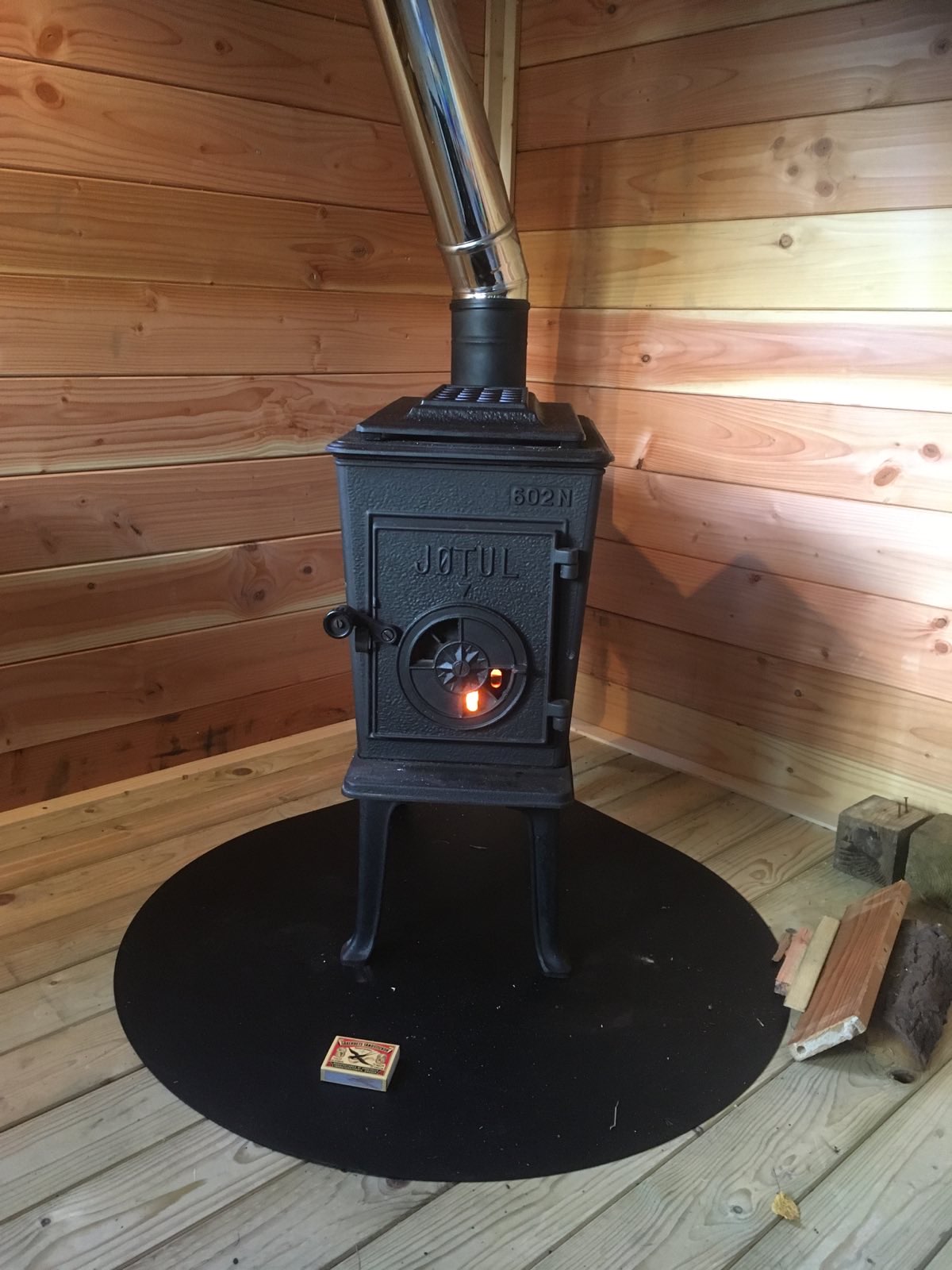 Isolatie aan de binnenzijde (plafond, muren en vloer) met vlaswol en dampfolie. Afwerking met Zweedse rabatten. Aanleg van vensterbanken. (Ver-)plaatsing stopcontacten en verlichting. Plaatsing van een houtkachel met rookkanaal door het dak.