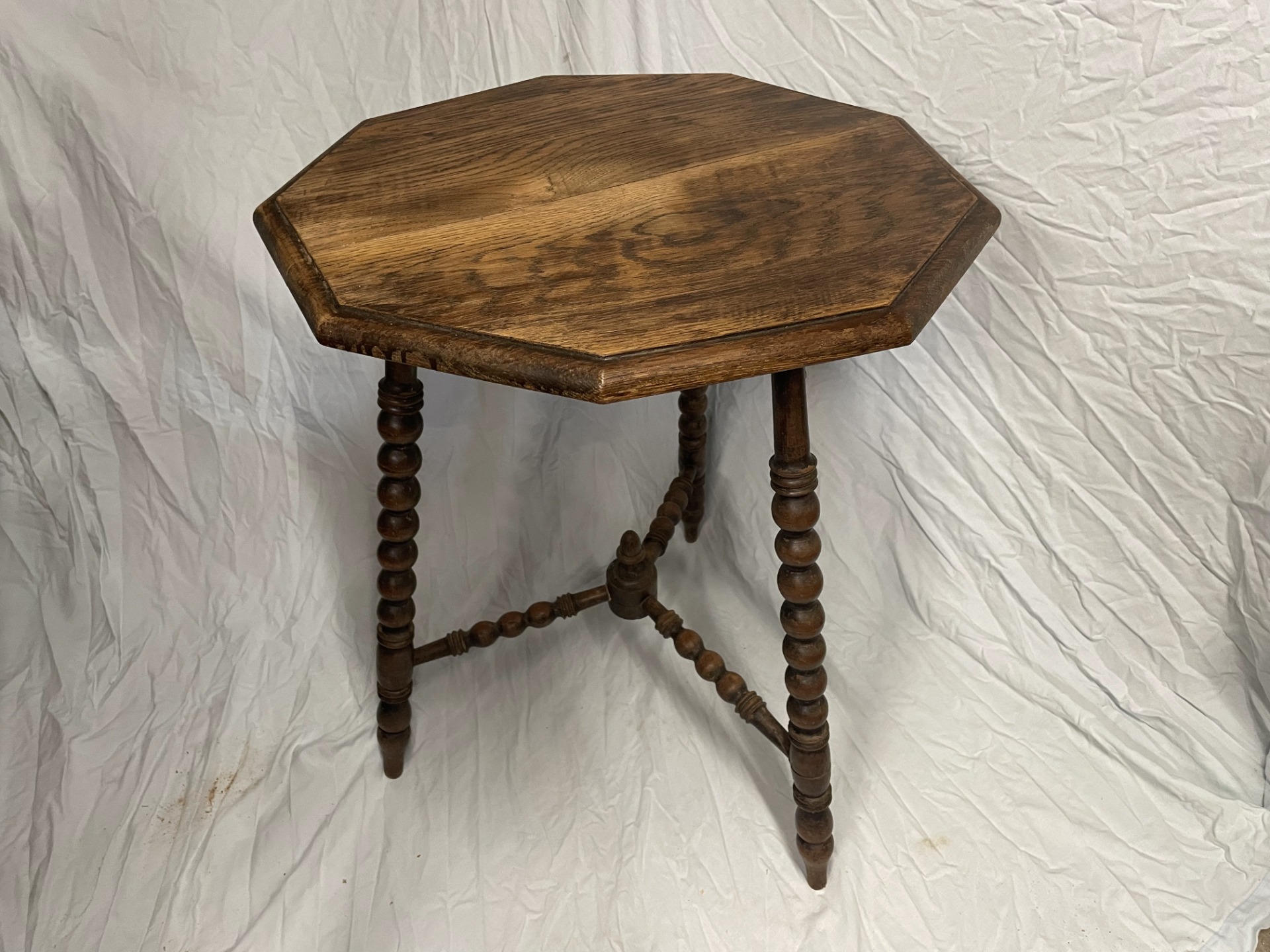 Scheur in het tafelblad gerepareerd met lijm en deuvels. Poten en dwarsliggers opnieuw vastgezet met lijm.