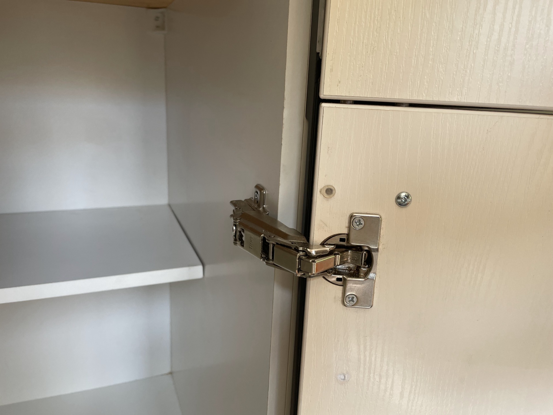 Carrousel voor pannen vervangen door L-vormige planken. De deurtjes die aan de carrousel verbonden zaten, zijn gedemonteerd en hergebruikt. Ze zijn nu individueel geplaatst met potscharnieren